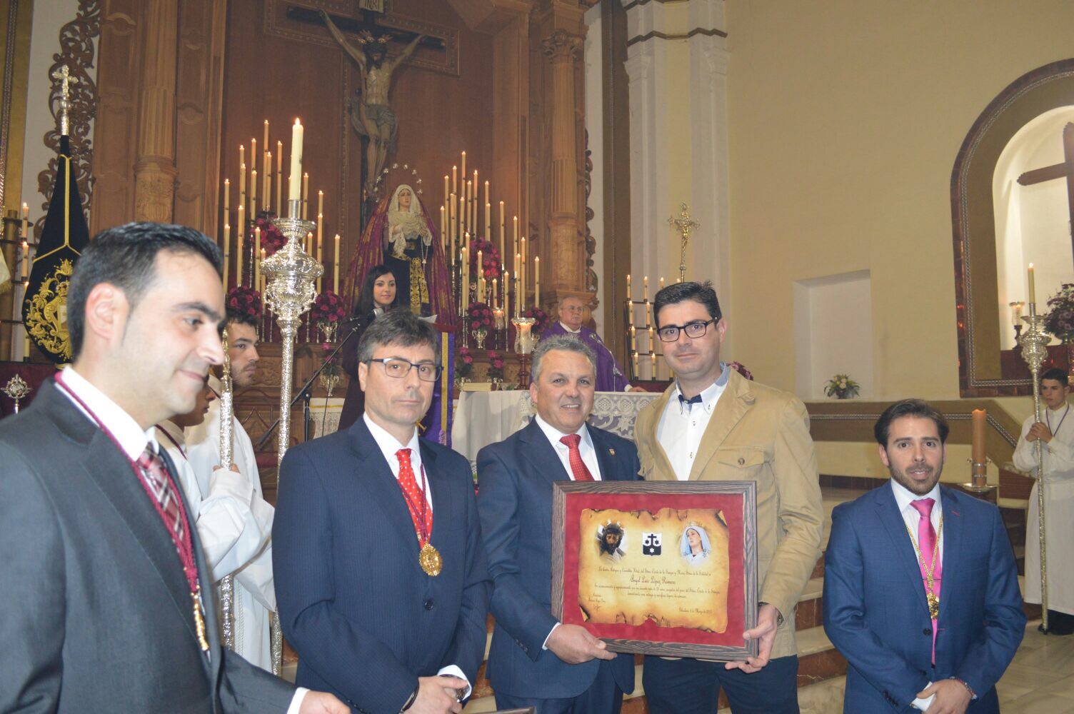 La pasada semana tuvo lugar el triduo en honor de nuestros Sagrados titulares, el Stmo. Cristo de la Sangre y María Stma. De la Soledad. El triduo comenzó el pasado jueves y terminó el sábado con la función principal. Los cultos fueron oficiados por nuestro director espiritual y párroco de nuestro pueblo D. Antonio Cepeda Lepe y en todo momento estuvimos arropados por una gran cantidad de hermanos y devotos de nuestra hermandad. Durante el oficio del segundo día se llevó a cabo, por parte de la hermandad, la imposición de las medallas a los nuevos hermanos. Cabe destacar la función principal, jornada muy especial, donde nos acompañaron nuestro organista y soprano, al igual que nuestro cuerpo de acólitos para dar más solemnidad a la función principal. También se reconoció la labor de nuestros hermanos cargadores, homenajeando a dichos cargadores que cumplían 10 y 20 años portando a nuestros Santísimos Titulares. Unos de los momentos más especiales se produjo cuando se procedió a la presentación y bendición del nuevo banderín de nuestro grupo joven, donde se pudo comprobar el compromiso que tiene este grupo de chicos y chicas, con nuestra hermandad, sacado dicho proyecto hacia delante.